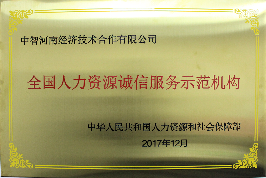 3.中智河南公司榮獲“全國人力資源誠信服務(wù)示范機(jī)構(gòu)”稱號
