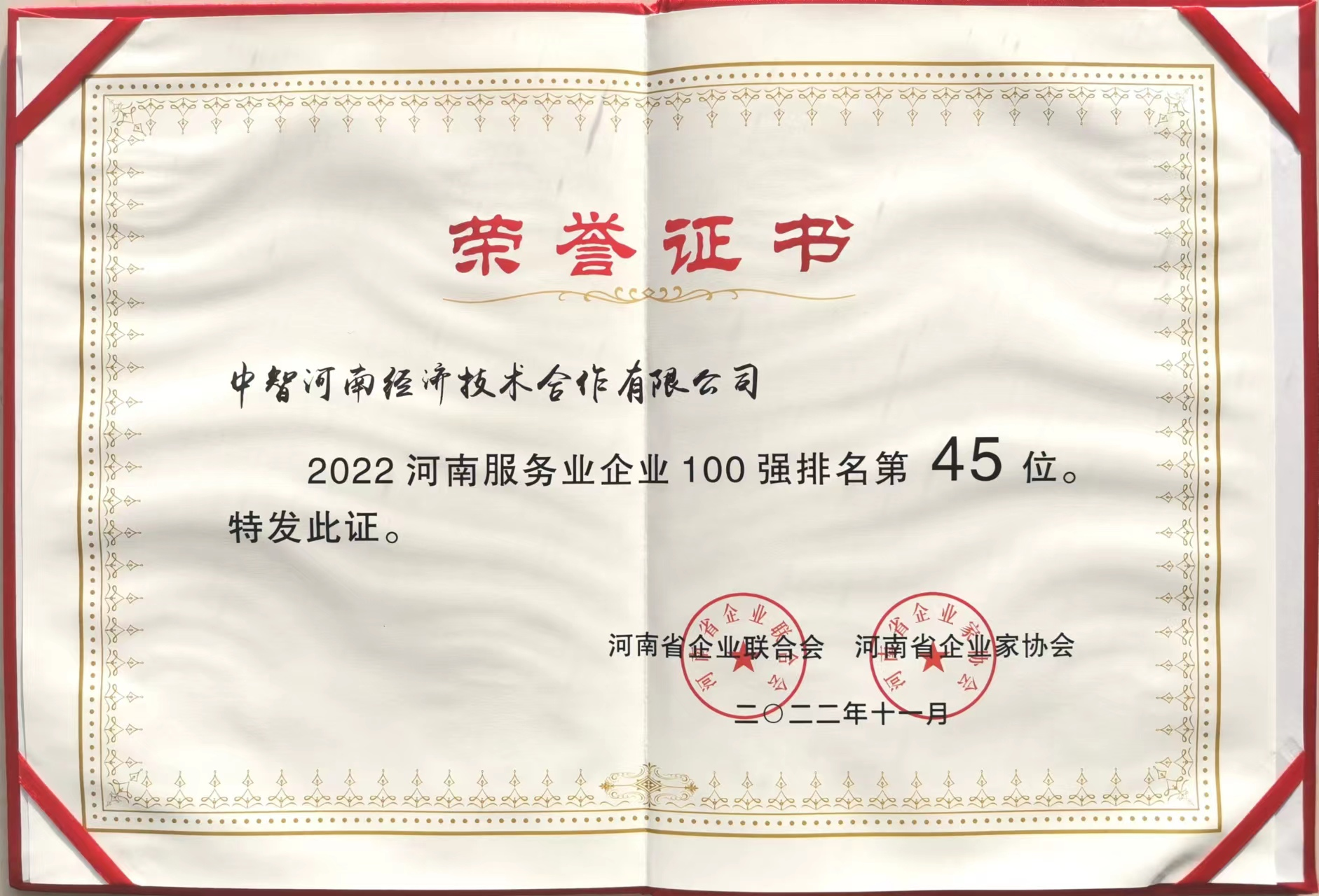 1.中智河南公司連續(xù)三年榮獲“河南省服務(wù)業(yè)企業(yè)100強(qiáng)”稱號